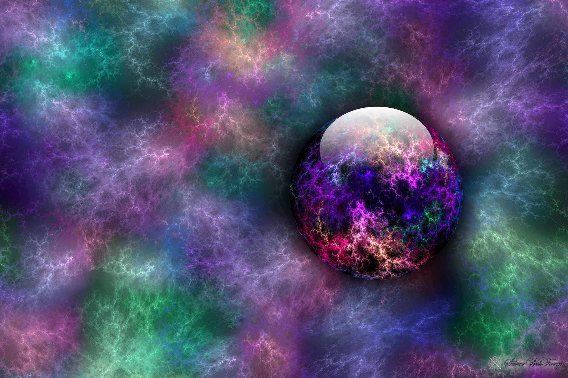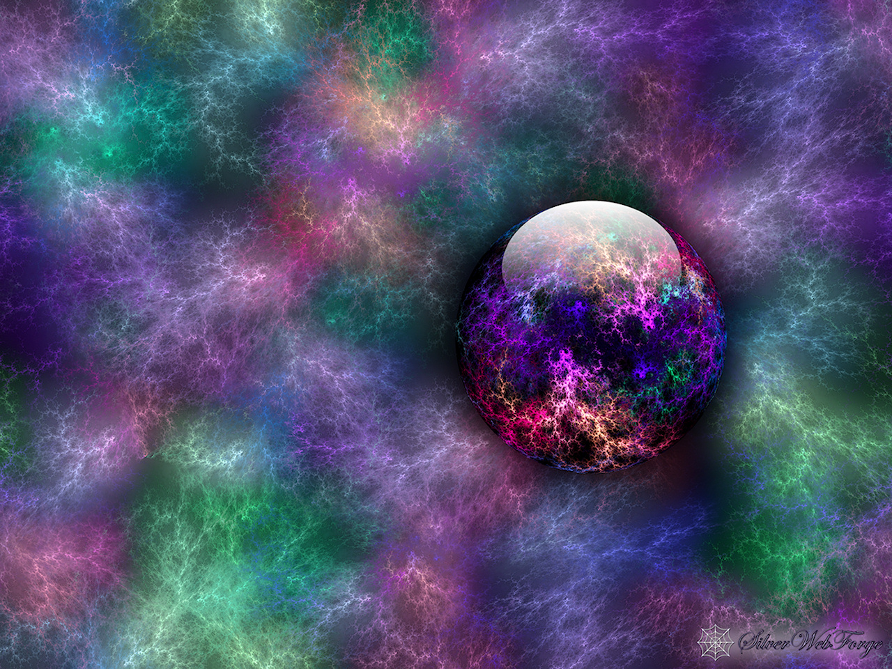 I took the fractal I used in Storms of Life and played with it, rotating, recoloring, adding layers, etc., and ended up with something that looks rather like a combination between a gravity well and a lightning storm.