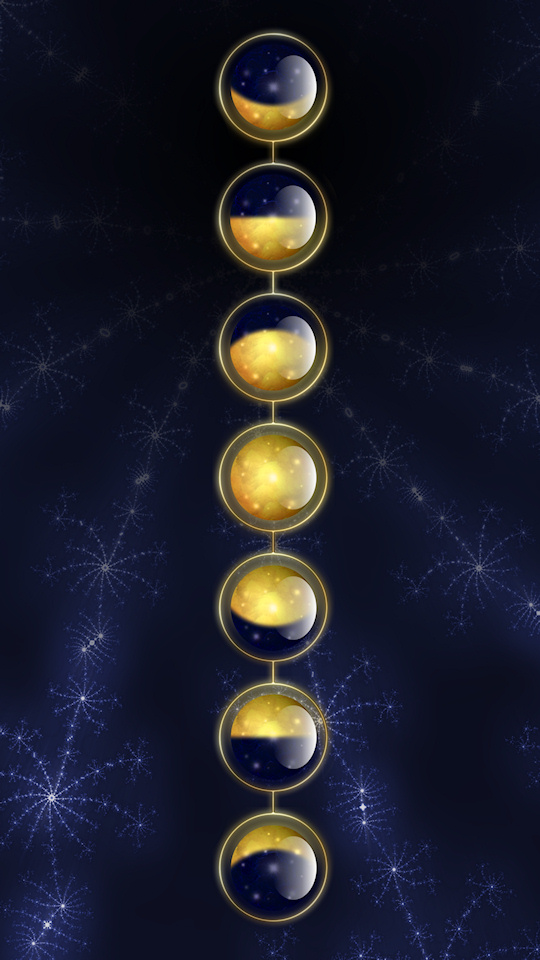 Waxing crescent, first quarter, waxing gibbous, full moon, waning gibbous, third quarter, waning crescent. You'll have to imagine the new moon …